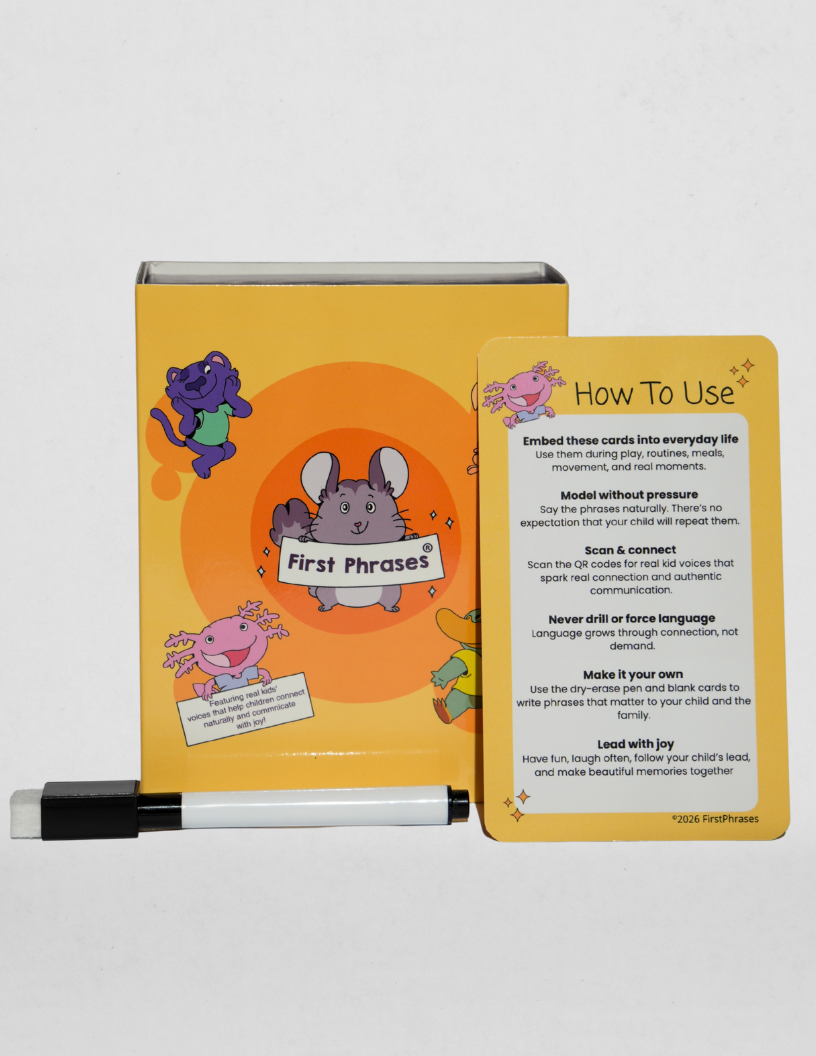 First PhrasesÂŽ was born from a simple truth that there are no tools designed to support how autistic children actually learn best: through joyful connection, and authentic play.